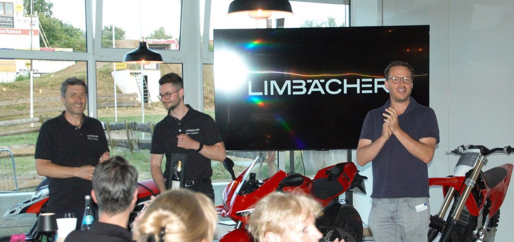 "Das erste was man als Nachfolger machen muss: Den elterlichen Betrieb radikal digitalisieren", stieg Fabio Limbächer selbstbewusst, aber für einen Vertreter der Gen Z thematisch nicht überraschend in seinen Vortrag beim Club-Abend im Juni an der Reutlinger Motocross-Strecke ein. Der Prokurist des deutschlandweit größten Motorradhandels Limbächer & Limbächer überließ seinem Vater Klaus Limbächer die dreieinhalb Jahrzehnte Firmenhistorie und den Nachwuchskräften des 1. Rad- und Motorsportclubs Reutlingen die spektakulären Sätze im Gelände. Selbst erklärte Fabio Limbächer nähere Ziele und die entsprechenden Zielkonflikte: "Wenn es nach mir geht, ist der Betrieb in zwei Jahren komplett papierlos - aber nicht nach den Mitarbeitern."