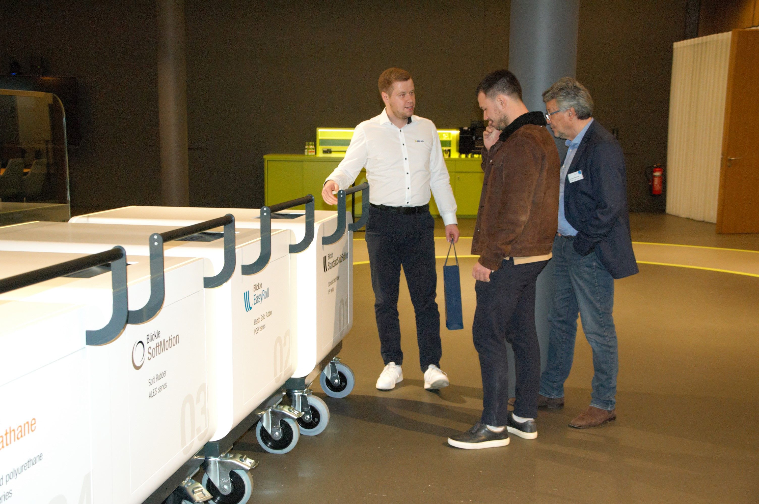 Umgekehrt stoße die deutsche Denke an ihre Grenzen. Blickle-Fenner erzählte von Bedenken beim Markteintritt in die USA wegen der Umsetzung des metrischen Systems in Zoll und Fuß. "Das war aber unser kleinstes Problem, die Art Geschäfte zu machen ist dort anders und wir haben unser Team amerikanisiert." Aus China, wo Blickle auch die Zweitmarke "Pegasus" produziert, hatte Herre eine ernüchternde Anekdote: "Die haben uns gebeten, von den Blickle-Katalogen 'Made in Germany' zu entfernen. Das gilt dort als langsam und teuer." Agilität verspricht dagegen das neuartige Antriebssystem "ErgoMove", das Blickle als Bausatz mit Elektroantrieb in auf Gewicht und Untergründe abgestimmten Konfigurationen anbietet. Manuel Fritz, der auch die Werksführung geleitet hatte, gab dazu noch eine kleine Vorführung, die deutlich machte, dass das Preis-Leitungsverhältnis nicht zuletzt von Zuverlässigkeit, Rollkomfort und Traglast abhängt.